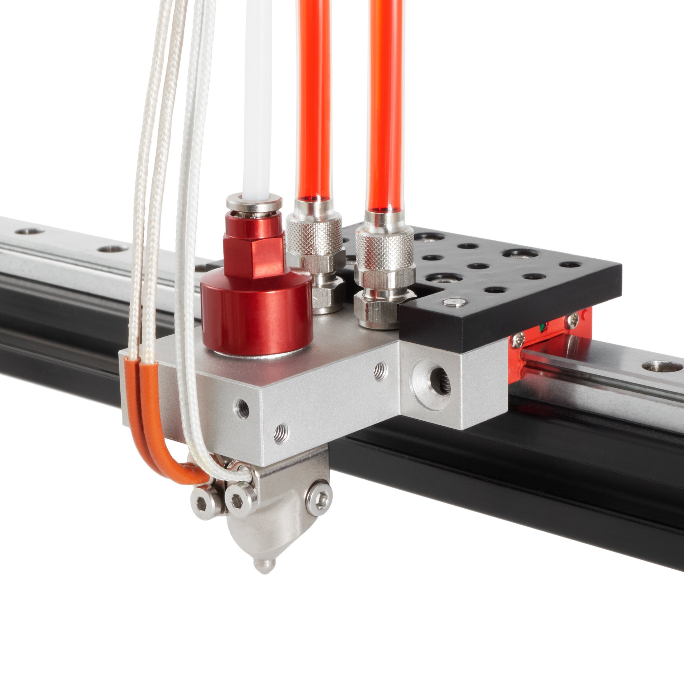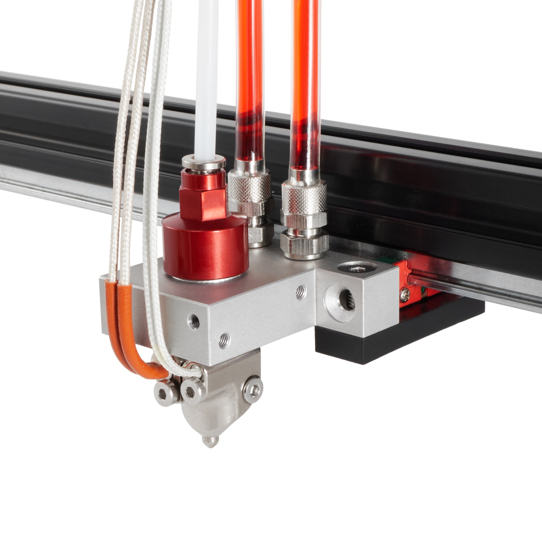 L’innovativo design del nostro hotend presenta un nuovo sistema di fissaggio che semplifica l’installazione sulla stampante. Il sistema offre elevata rigidità e affidabilità dell’ancoraggio e richiede solo due viti M4 per essere posizionato in diverse configurazioni, adattandosi alla struttura della tua stampante. La progettazione del carrello stesso è semplificata, consentendo una soluzione efficiente su diverse strutture, che siano barre tonde, guide a ricircolo di sfere, stampanti delta o bracci robotici.